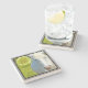 The coasters are gorgeous, a quality feel and heavy weight. They look like a precious archeological find. A rustic stone juxtaposed with a modern floral black and white print. I like the way the print goes slightly imperfect on the cut stone edges giving them a kind-of natural beauty.