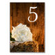 Customise these charming White Hydrangea and Barn Wood Country Wedding Table Numbers and create a different card for each table at your casual yet classy rural farm or ranch theme engagement celebration, bridal shower barn party or marriage reception. These informal and elegant custom rustic wedding theme table number cards feature a quaint floral photograph of a white hydrangea flower blossom and vintage white lace trimmed linen handkerchief on a hay bale with a weathered brown barn wood background.