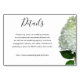 Wedding website / details enclosure cards with white Limelight hydrangea flowers. Pale green reverse and pretty hydrangea flower on the front. Customise text in three places and direct wedding guests to a website for travel, accommodations and other information.