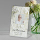 Remember the life of your loved one after their death with the elegant White Hydrangea Floral Celebration of Life Funeral Pedestal Sign. This pretty flowery tribute memorial signage features a close up floral photograph of white hydrangea flower blossom petals and the words In Remembrance. Feel free to change the text and personalise it with a picture, name and dates.