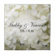 Customise the pretty White Hydrangea Floral Wedding Tile with the personal names of the bride and groom and marriage ceremony date to create a keepsake gift for the newlyweds, bridesmaids or attendants. This elegant custom botanical nuptial tile features a close up floral photograph of a white hydrangea flower blossom.