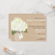 Rustic baby shower invitation card design featuring burlap-look background and mason jar full of white hydrangeas.