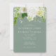 Elegant White Hydrangea Floral Dark Sage rounded shape wedding invitation. White Floral.