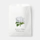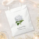 Elegant white favour bag with lovely artwork of a white hydrangea. Personalise the black custom text for wedding event. Great for candy and sweets bars.
