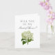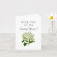 A proposal card for your maid of honour, this modern white card features an antique white and green hydrangea flower stem illustration with classic and easy to personalise text letting you choose how to "propose" to your bridal party members.