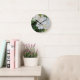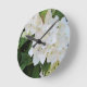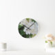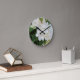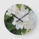 A beautiful white hydrangea accents the center of this clock. Crisp green foliage accents it.