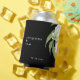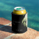 Black background with White Hydrangeas Wedding favour can cooler. White typography. Modern Design and font. Elegant. Black and white.