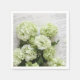 Photo of white and pale green hydrangeas on an old-fashioned script handwriting background