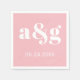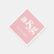 White initials typography on pink wedding napkin