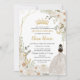 White Ivory Floral Princess Gold Quinceanera 15 XV Invitation