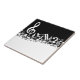 Perfect for the music lover or musician with an eye-catching modern design featuring white jumbled musical notes and a large treble clef on a classical black background.