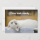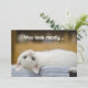 Welcome to my class / first grade cards from the teacher. The front image is a little white kitten lying with his / her head tipped backwards and upside down. Sample text is, “You look ready...” The sentence continues on the back with, “for first /any grade”. Add a personal welcome to class message using the paragraph provided. Welcome students, send class and school information, and encourage kids for the first day and year to come.
