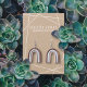 Modern and elegant whilst not distracting from your product. White ink on kraft with a cute geometric frame.