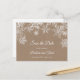 Christmas themed wedding save the date postcard with white snowflakes on kraft paper background. Great for elegant winter weddings and other seasonal & holidays events.