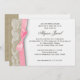 Pretty white lace with a pink bow over burlap, printed design for first holy communion, baptism or any occasion at all. Change text as preferred. All parts of this invitation are a printed graphic design, there is no real burlap, lace or ribbon attached.