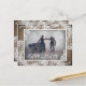 White lace over grunge rustic burlap background elegant modern goth save the date postcard with photo insert.