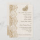White lace and cardboard heart with initials on burlap wedding invitation featuring white lace on linen natural burlap or hessian and a heart made of cardboard with initials. Text in brown. Note that lace, cardboard and burlap are all “printed on” and not real materials. This elegant, shabby chic sophisticated and romantic design with a rustic essence is part of a wedding set and is perfect for a country chic or western spring, summer or fall/autumn wedding with a neutral colour palette.