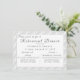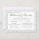 Design features the appearance of white lace as background to your information, which is displayed in a silver font against a white backing. Heading reads, "Please join us for a Rehearsal Dinner in honour of" The names of couple along with the city and state of event are displayed just below heading. First initial of couple's last name is displayed in a large, white font on opposite side. Very elegant. Designed to coordinate with the White Lace Catholic Monogrammed Wedding Suite collection.