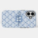 White Lace Damask on Dusty Blue Monogram & Name Case-Mate iPhone Case