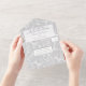 An all in one wedding invitation details with attached perforated RSVP cards.