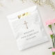 First Holy Communion design, featuring a gold crucifix and lace effect on white. Ready for easy personalisation.