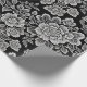 White Lace Florals on Black Wrapping Paper