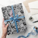 Elegant white lace wrapping paper designed with ornate white lace graphic on black background. This wrapping paper is perfect for many occasions from weddings and bridal showers, birthday gifts, holiday and special occasions, to small home decor and embellishment projects.