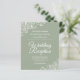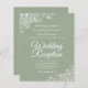 These affordable, budget friendly wedding reception invitations are the perfect choice for class, style, and beauty on a budget. Designed for guests who are invited to the reception but not the ceremony, they feature a beautiful sage green coloured background with ornate white faux lace frills in the corners. The typography includes fancy script lettering for a style that is at once simple and elegant. Wonderful way to invite your friends and family to share in your joy on your special day without breaking the bank.