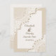 Elegant white lace with pearls wedding Save the Date announcement featuring white lace on sand beige that covers two corners of a white rectangle with beige border. Text in brown. Note that lace is “printed on” and not real fabric. This elegant, shabby chic sophisticated and romantic design is part of a wedding set and is perfect for a chic spring, summer or fall/autumn wedding with a neutral colour palette.