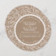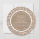 White leaves pattern kraft paper rustic round wedding invitation. The focus of this lovely wedding invite is a floral pattern made of leaves in white and a frame with scalloped white outline that holds your wording on kraft paper style.