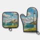 White Lighthouse With Sailboat Oven Mitt & Pot Holder Set