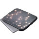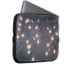 The original artwork on this 10” Laptop Sleeve was created from an original photograph by ZoeSPEAK of a string of white lights and an empty black string, hanging in twists and turns in front of a stucco wall. The lights have a pink glow, and the wall is a dusky bluish grey.