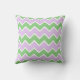 A throw pillow designed with a white, lilac and green chevron pattern. Customise the pattern size among other options.