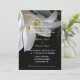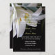 spring, summer, holiday wedding invitation from bride and groom's parents. Pretty, pure white Easter lily flower in black background. Floral garden flower photo art.