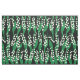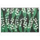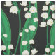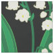 White lily of the valley with leaves pattern repeat patter design on black background.