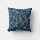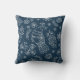 This throw pillow has a pretty Scandinavian style pattern of birds, botanical items, and even snowflakes, all in white line. The images are placed on a dark blue background. Both sides of the pillow have the same pattern. Be sure to see the matching products in our store.