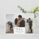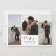 Photo collage wedding thank you card in white with black fonts. Flat wedding thank you card with photos printed on one side and lines on the other so you can write a thank you message by hand. Wedding thank you card printed with photos and your names with Thank you written in a black calligraphy script. Timeless and tasteful wedding thank you card with a photo collage with three of your wedding photos.