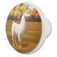 White Llama in Autumn Farm Pasture Ceramic Knob