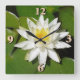 10.75” x 10.75” square acrylic wall clock with an image of an extreme realism watercolor painting of a spectacular white lotus flower. The white lotus represents the state of spiritual perfection and total mental purity (bodhi). See the entire Flowers & Plants Clock collection in the HOME section.