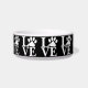 White LOVE Word Dog Paws Pattern Black Background Bowl