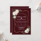 White Magnolia Deep Burgundy All In One Wedding Invitation