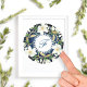 White magnolia wreath surrounds blue, customisable monogram initial. Background of celestial blue, vegan embossed leather with stitched look.