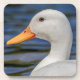 This is a portrait of a white mallard duck that is swimming in a pond at Downing Park in Newburgh, NY. The morning sun added a beautiful blue reflection to the water. This image was taken by Debbie Quick of Debs Creative Images. To see more photography by Debbie, check out her website at: www.debscreativeimages.com