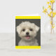 Aww...who can resist the sweet face of a Maltese puppy dog? This charming canine note card features an image of a white Maltese puppy dog highlighted with a yellow border. Inside is blank for your personal message.