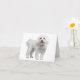 Greeting cards are a great way to show appreciation, or to let friends and family know how special they are when sometimes the words go unspoken. This cute notecard features a happy white Maltese puppy dog  standing on a crisp  white background.
