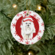 On the front of this Holiday ornament is a beautiful watercolor image of an adorable white Maltese wearing a red and white striped Santa hat. The image is placed on a red oval framed by a retro red snowflake pattern on a white border. The back of the ornament has the same background and oval with your custom text in white on a matching red background. Beautiful, especially for someone who loves a Maltese dog.