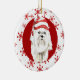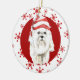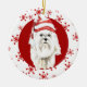 White Maltese Santa Hat Red Snowflake Ceramic Ornament
