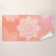 White mandalas on coral marble background bath towel set
