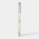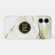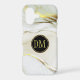 Here's an elegant and pretty phone case that features your two letter monogram in gold at the centre of a black, gold framed circle banner. The banner is placed on a background of faux white marble laced with gold. Classy!