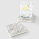 The coasters are gorgeous, a quality feel and heavy weight. They look like a precious archeological find. A rustic stone juxtaposed with a modern floral black and white print. I like the way the print goes slightly imperfect on the cut stone edges giving them a kind-of natural beauty.